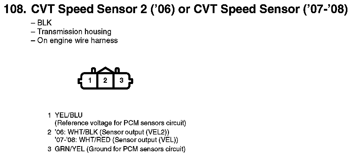 108. CVT Speed Sensor 2 Or CVT Speed Sensor:
