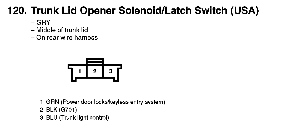 120. Trunk Lid Opener Solenoid/Latch Switch (USA):
