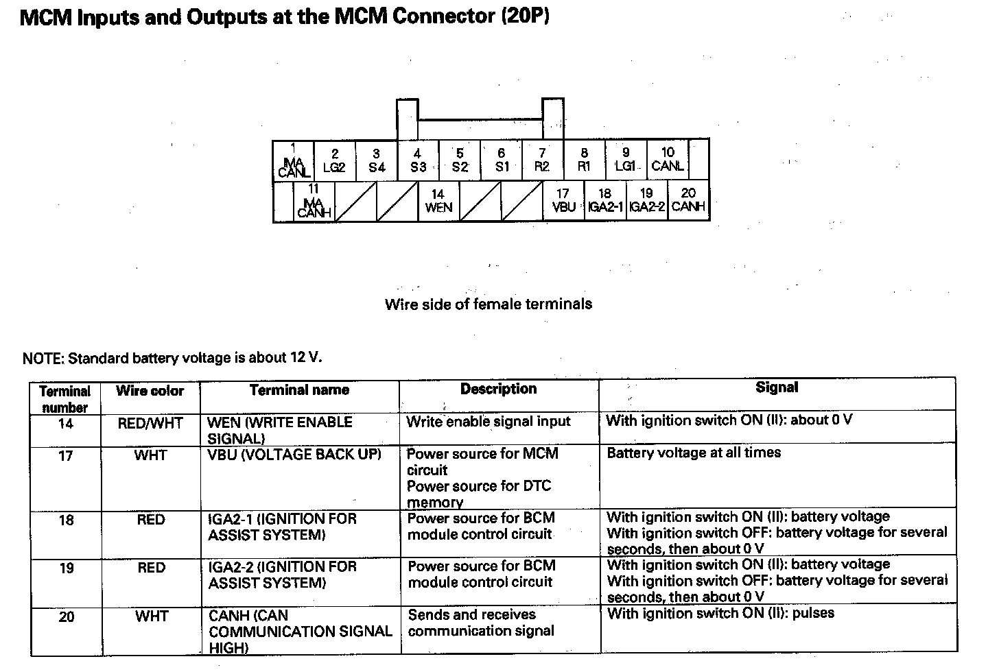 MCM Inputs And Outputs At The MCM Connector (20P) Part 1: