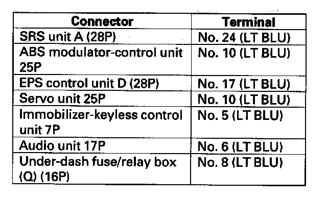 77. Continue to check for continuity between PCM connector terminal B18and body ground, while disconnecting these parts, one at a time: