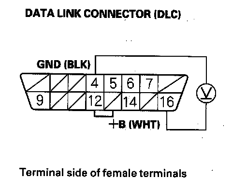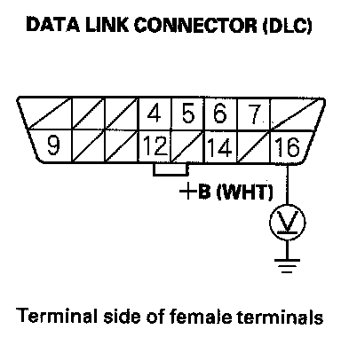 27. Measure voltage between DLC terminal No. 16 and body ground.