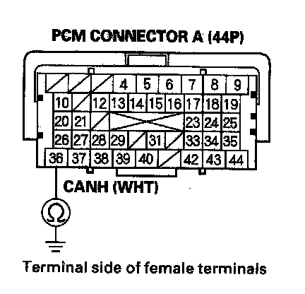 34. Check for continuity between PCM connector terminal A36 and body ground.