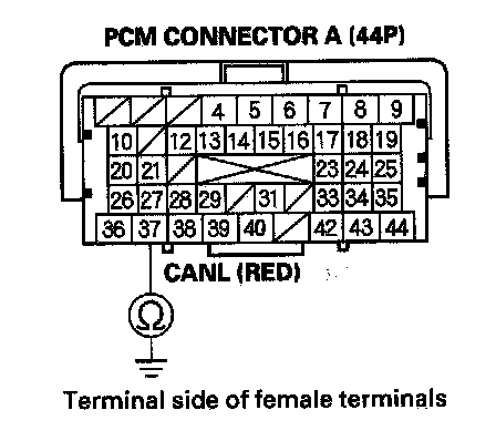 36. Check for continuity between PCM connector terminal A37 and body ground.