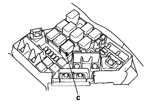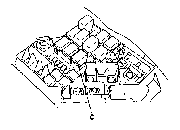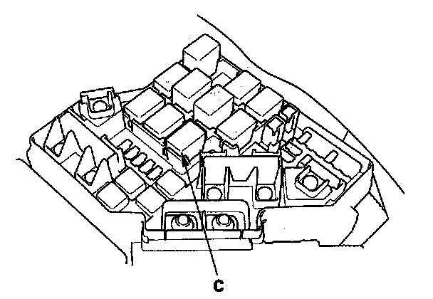 68. Remove PGM-FI main relay 1 (C) from the under-hood fuse/relay box.