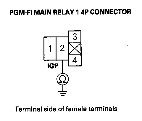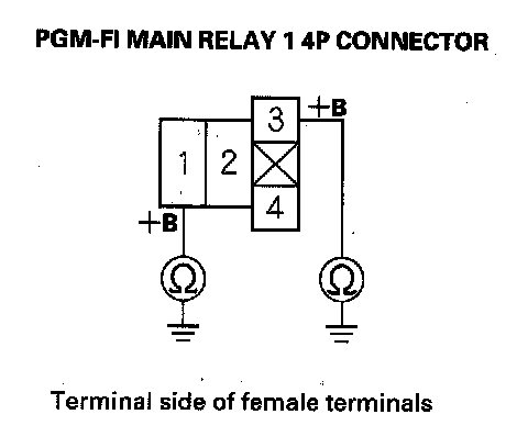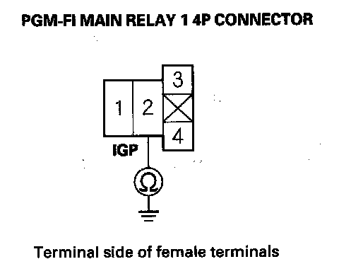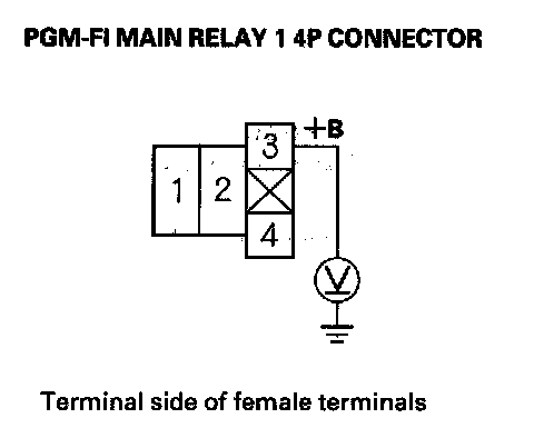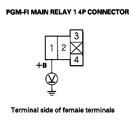 69. Measure voltage between PGM-FI main relay 1 4P connector terminal No. 1 and body ground.