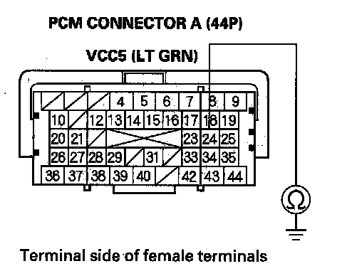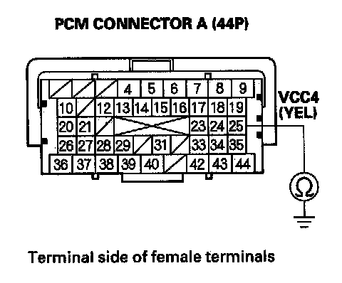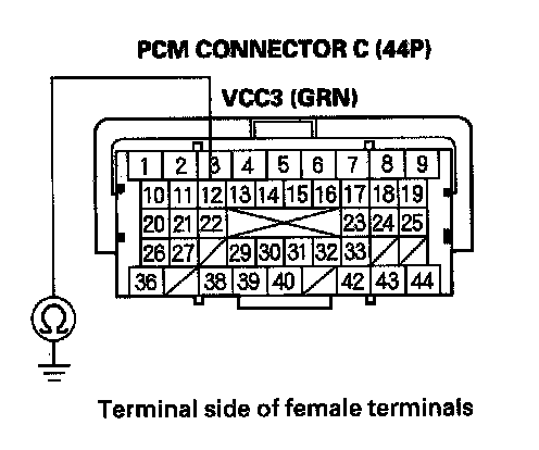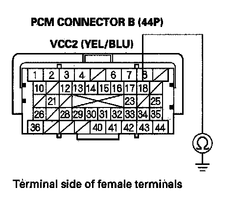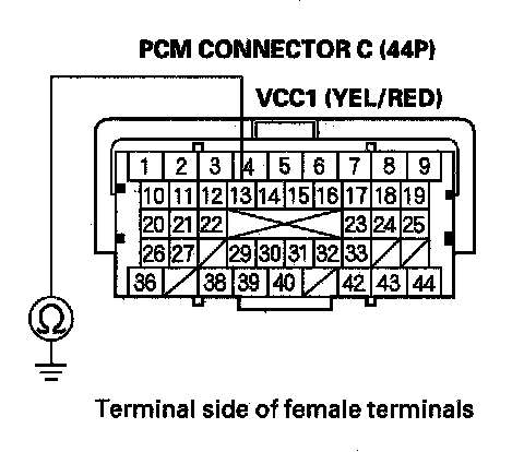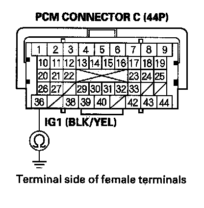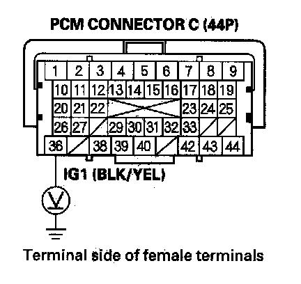 61. Measure voltage between PCM connector terminal C36 and body ground.