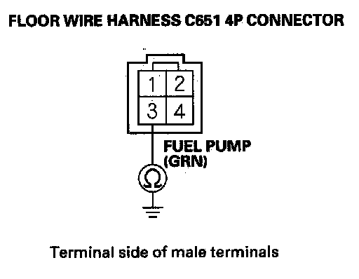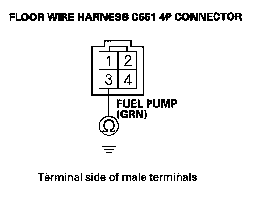 57. Check for continuity between floor harness C651 4P connector terminal No. 3 and body ground.