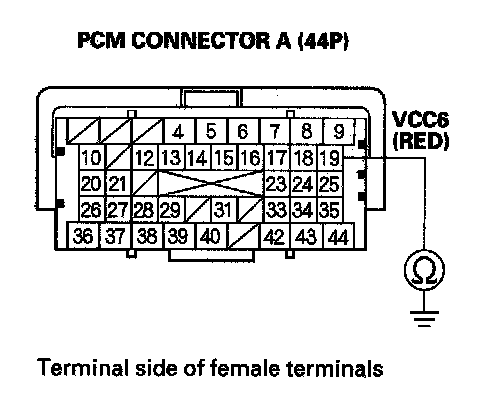62. Measure voltage between PCM connector terminal A6 and body ground.