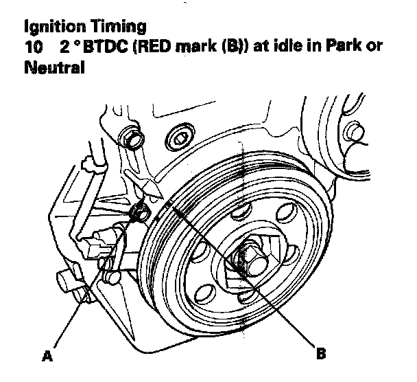 Ignition Timing Inspection1. Connect the Honda Diagnostic System (HDS) to the data link connector (DLC), and check for DTCs. If a DTC is present, diagnose and repair the cause before inspecting the ignition timing.