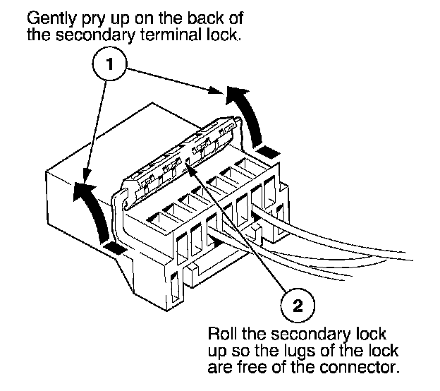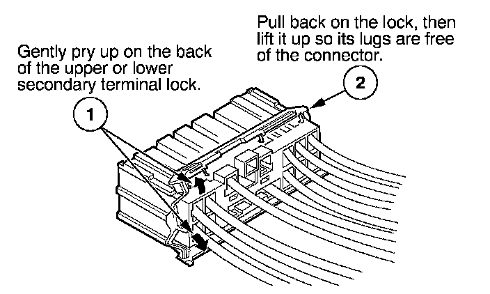 - If it has a secondary terminal lock, go to Connectors With a Secondary Lock. A secondary lock, found on most connectors on some models, is an additional locking device on the connector housing as a backup for the primary lock on the terminal.