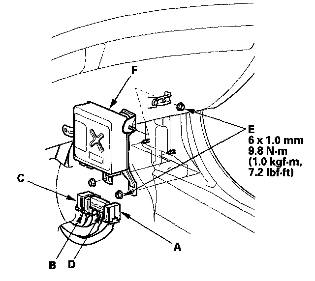 5. Disconnect EPS control unit connector A (2P), connector B (2P), connector C (2P), and connector D (28P).