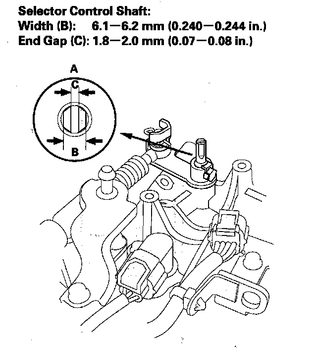 6. If the measurement of the selector control shaft end is within the standard, replace the transmission range switch. If the measurement is out of the standard, repair the selector control shaft end, and recheck the transmission range switch continuity.