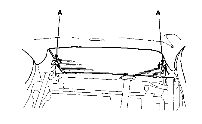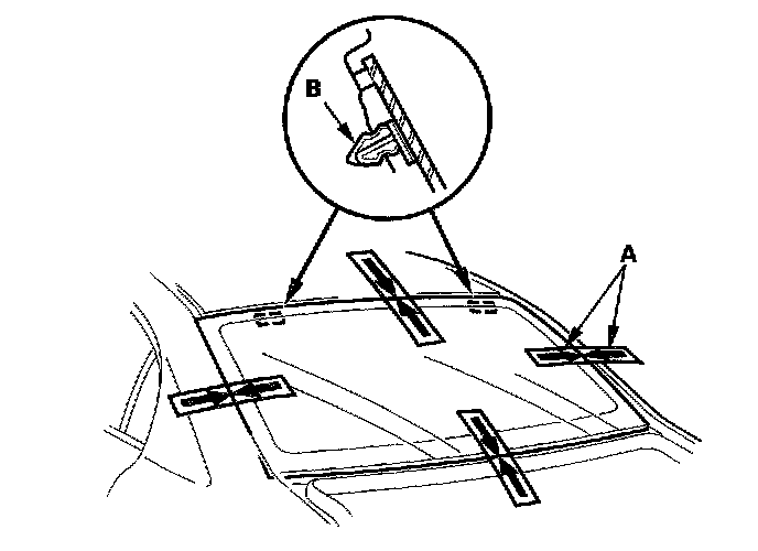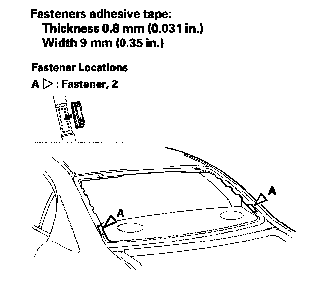 14. Attach the fasteners (A) with adhesive tape to the rear window opening flange of the body on both sides.