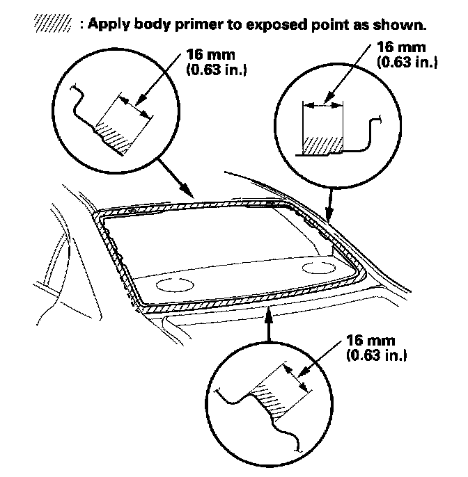 - Do not apply body primer to the rear window, and do not get body and glass primer sponges mixed up.