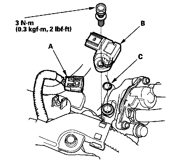 4. Install the parts in the reverse order of removal with a new O-ring (C).
