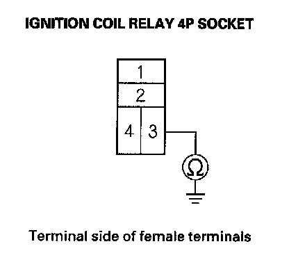 10. Check for continuity between ignition coil relay 4P socket terminal No.3 and body ground.