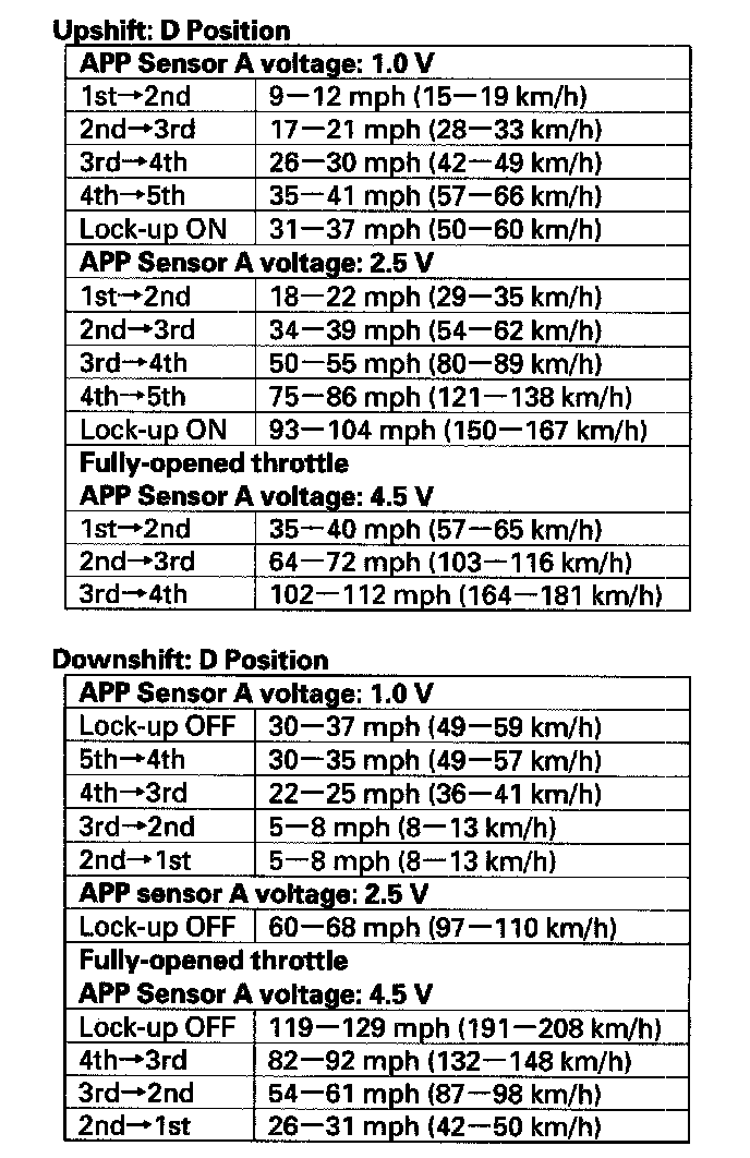 8. Monitor the HDS and accelerate quickly until the APP Sensor A reads 1.0 V. Maintain a steady throttle until the transmission shifts to 5th gear, then slow the vehicle and come to a stop.