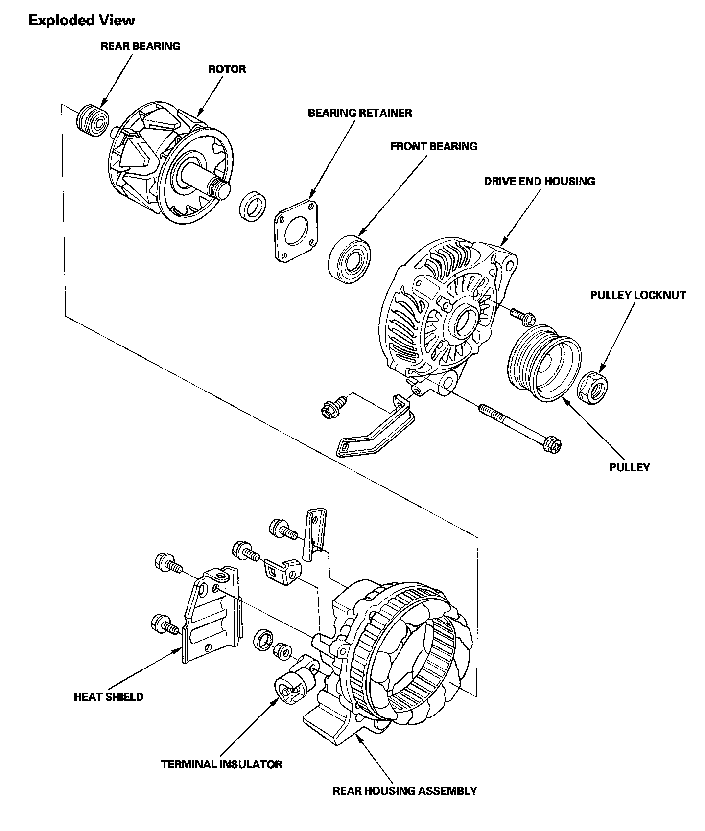 - If either the rotor or drive end housing is damaged, replace the alternator.