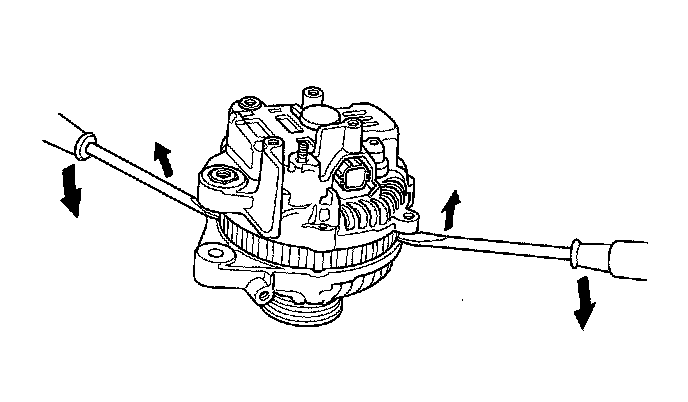 7. Separate the rear housing from the drive end housing by inserting a flat-tip screwdriver into the openings and prying them apart.