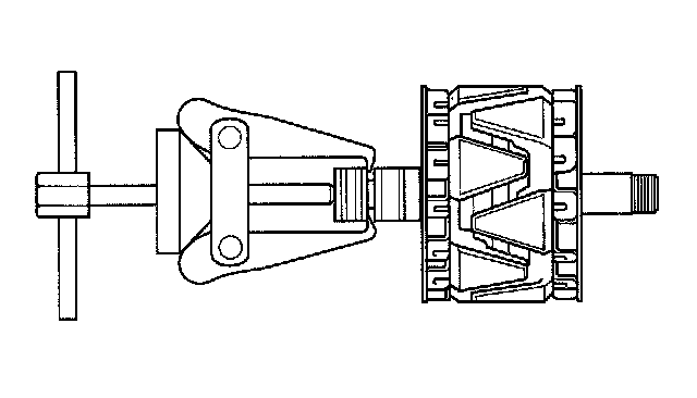 9. If you are not replacing the front bearing and/or rear bearing, go to step 17. Clamp the rotor in a soft-jawed vise, then remove the pulley locknut.
