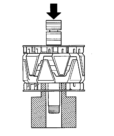 25. After assembling the alternator, turn the pulley by hand to make sure the rotor turns smoothly and without noise.