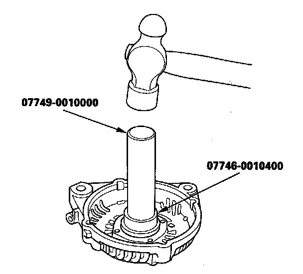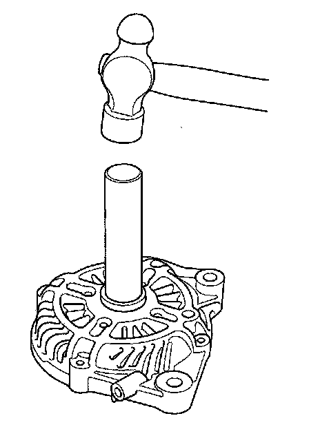 16. With a hammer and the special tools, install a new front bearing in the drive end housing.