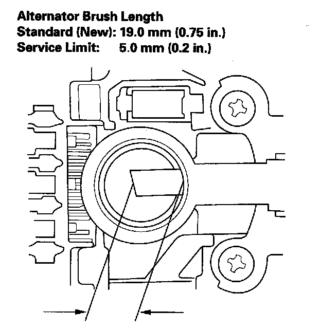 - If either brush is shorter than the service limit, replace the rear housing assembly.