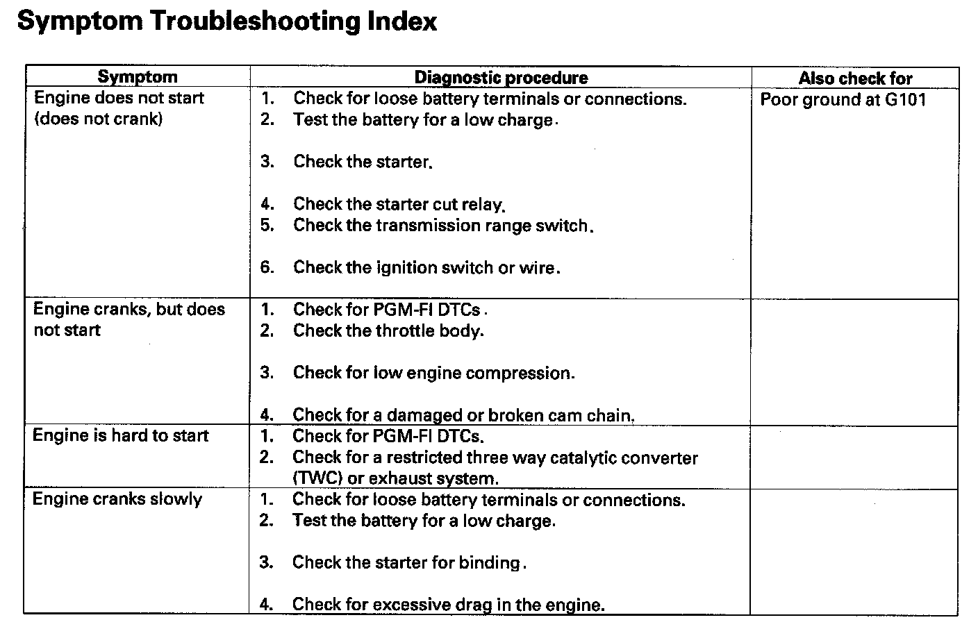 Symptom Troubleshooting Index:
