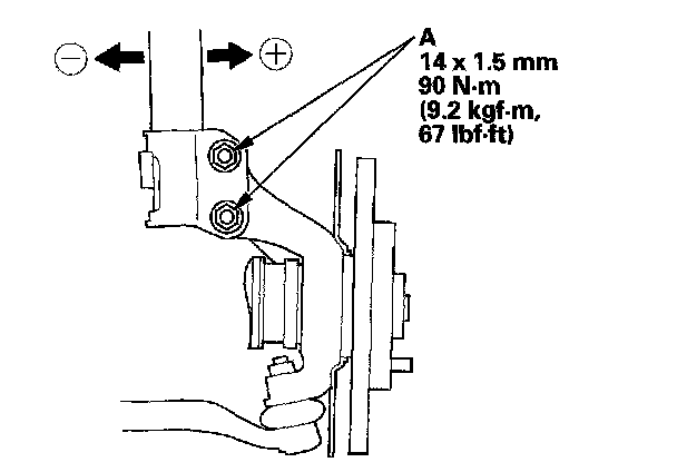 ^ The camber angle can be adjusted up to ±25' (center of tolerance) by replacing one damper pinch bolt with the adjusting bolt.