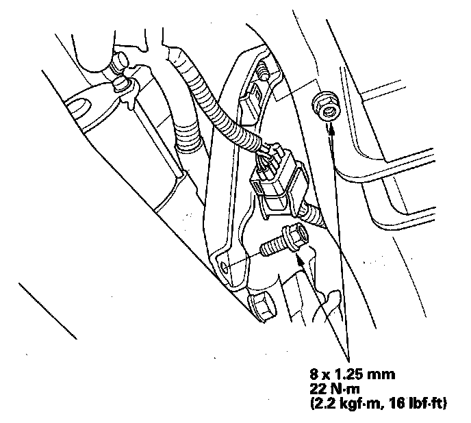 3. Install the starter, and tighten the bolts then install the harness clamp (A).