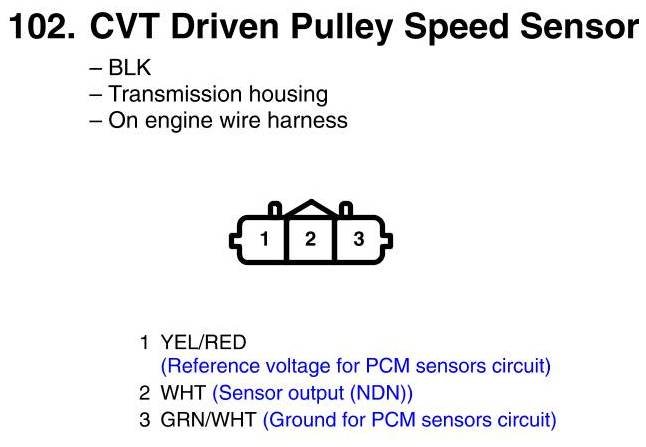 View 102 - CVT Driven Pulley Speed Sensor Connector View