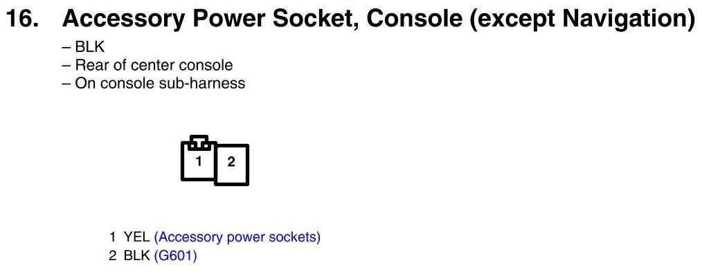 View 16 - Accessory Power Socket, Console Connector View (Except Navigation)