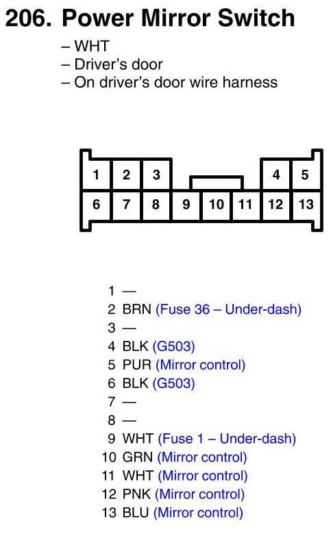 View 206 - Power Mirror Switch Connector View