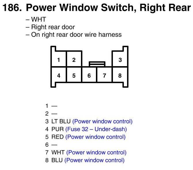 Power Window Switch, Right Rear Connector View