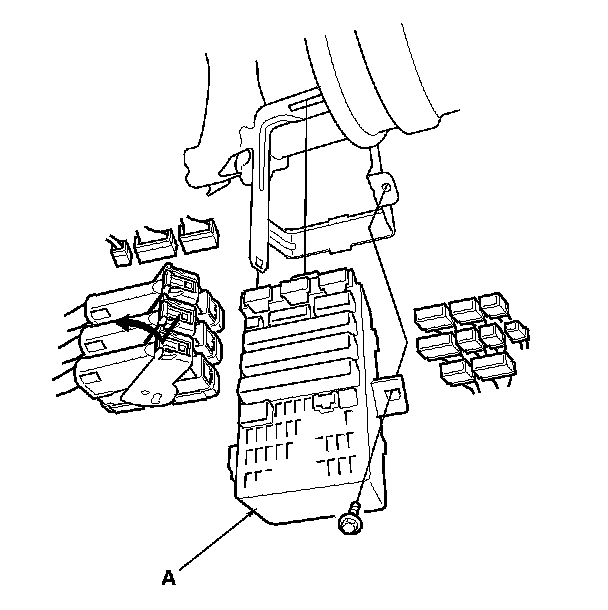 3. Disconnect the connectors from the fuse side of the under-dash fuse/relay box (A).