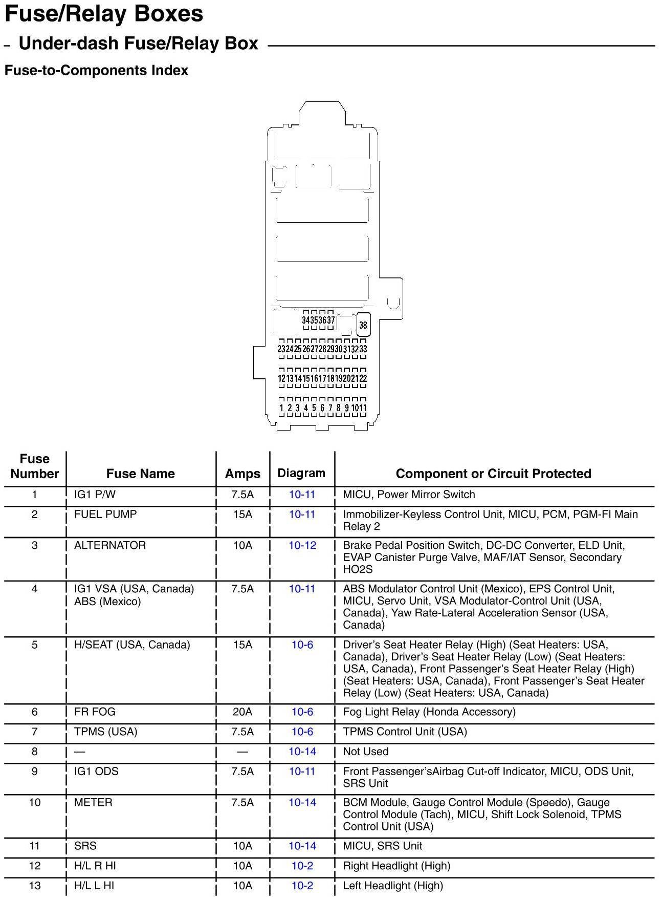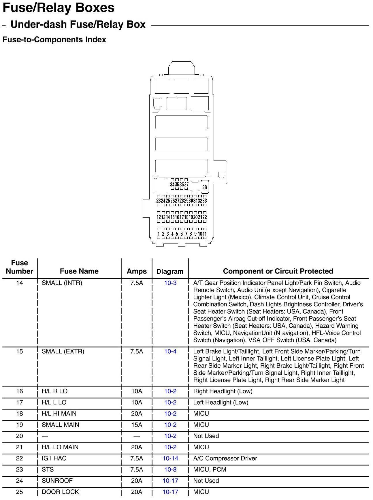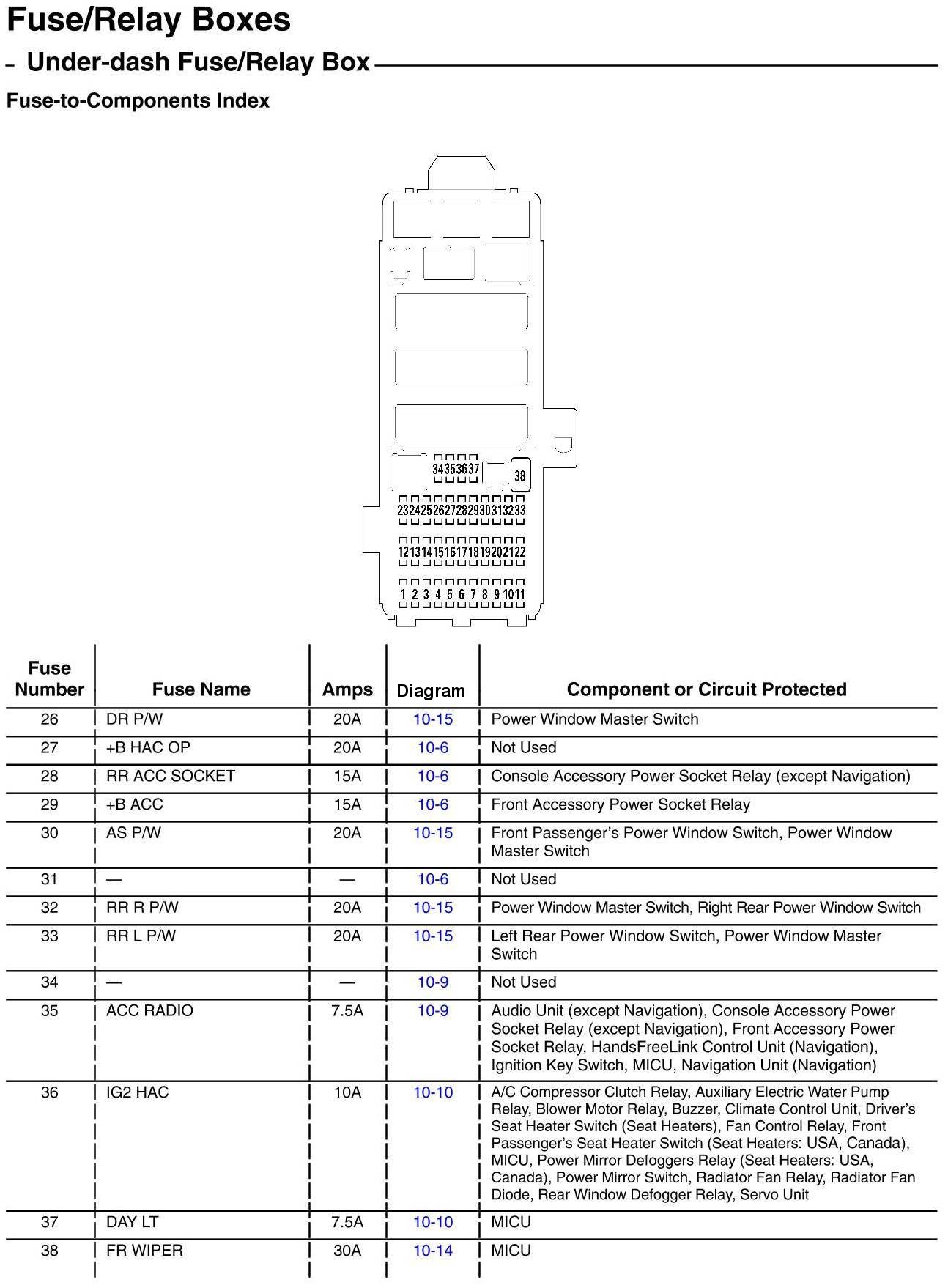 Under-dash Fuse/Relay Box - Fuse-to-Components Index