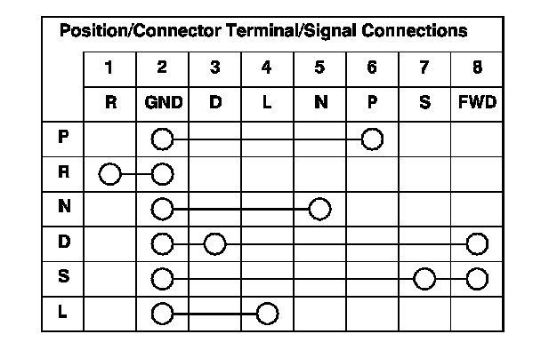 4. Transmission range switch test is completed if the test results are OK. If there is no continuity between any terminals, go to step 5.