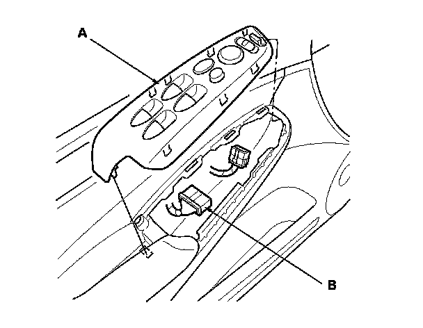 2. Disconnect the 20P connector (B) from the power window master switch.