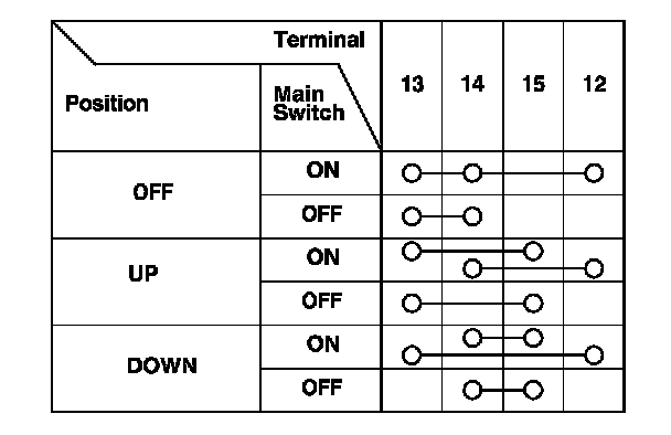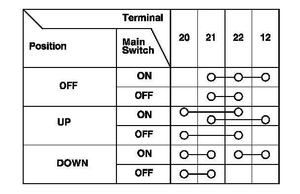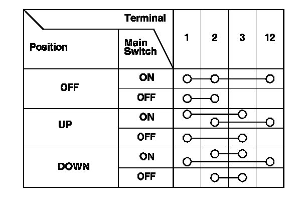The driver's switch is combined with the control unit so you cannot isolate the switch to test it. Instead, run the master switch input test procedures. Power Window Master Switch Input Test If the tests are normal, the driver's switch must be faulty. Replace the switch.