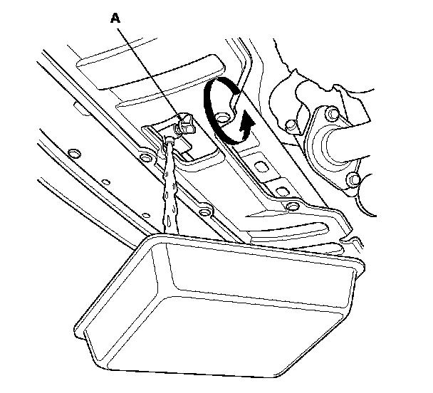 4. Remove the drain bolt (A) located at the front of the engine block.