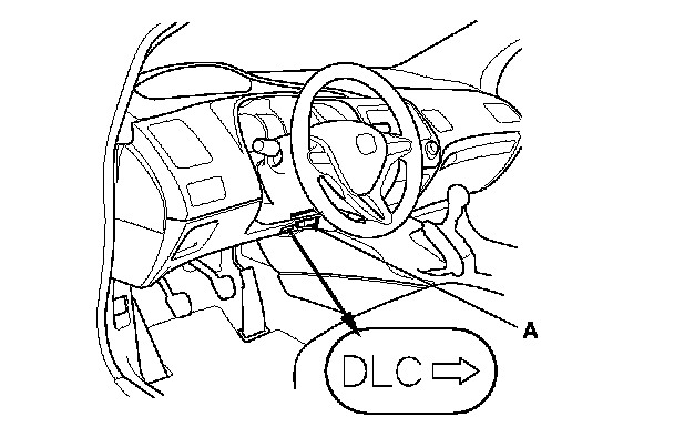 1. Connect the HDS to the data link connector (DLC) (A) located under the driver's side of the dashboard.