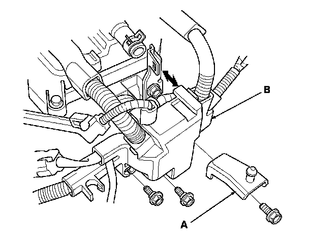 2. Remove the air cleaner bracket (A), then remove the harness holder (B) from the cylinder head.