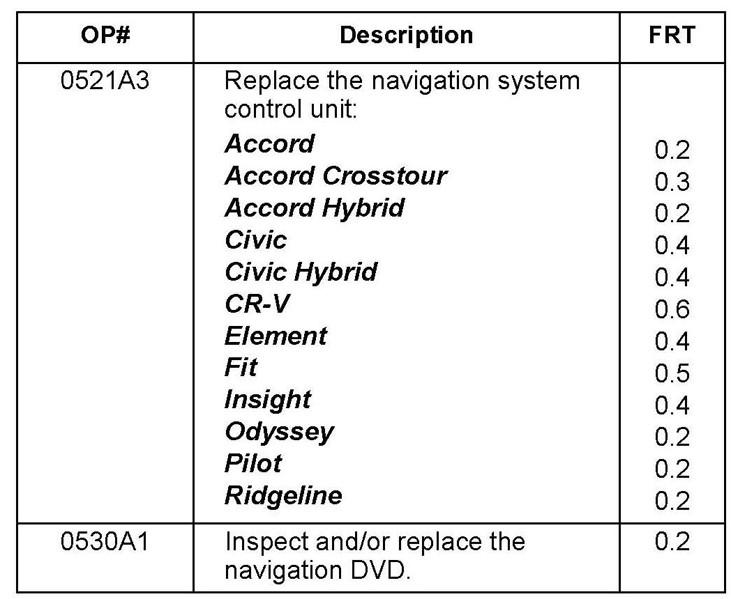 For information on navigation unit ordering, see Service Bulletin 06-001, Audio, Navigation, and RES Unit In-Warranty Exchange and Out-of Warranty Repair