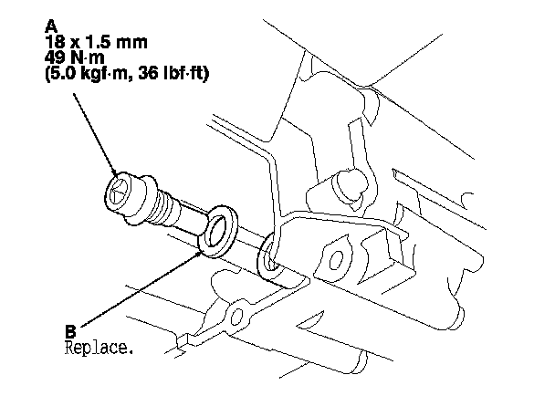 6. Remove the drain plug (A), and drain the automatic transmission fluid (ATF).