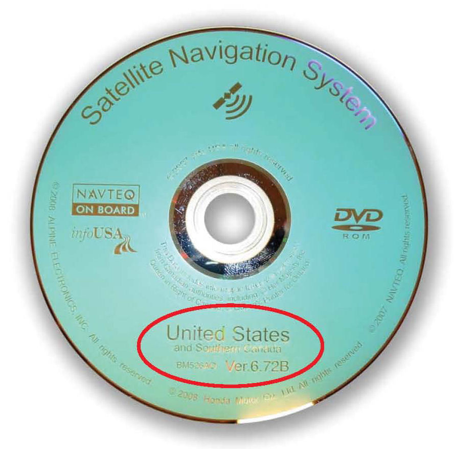 To determine the navigation version on a particular model, start the engine, then locate the navigation control unit (see the appropriate service manual). Open the DVD door, and push the eject button to eject the DVD. Hold the DVD by the edges, and check for these items:
