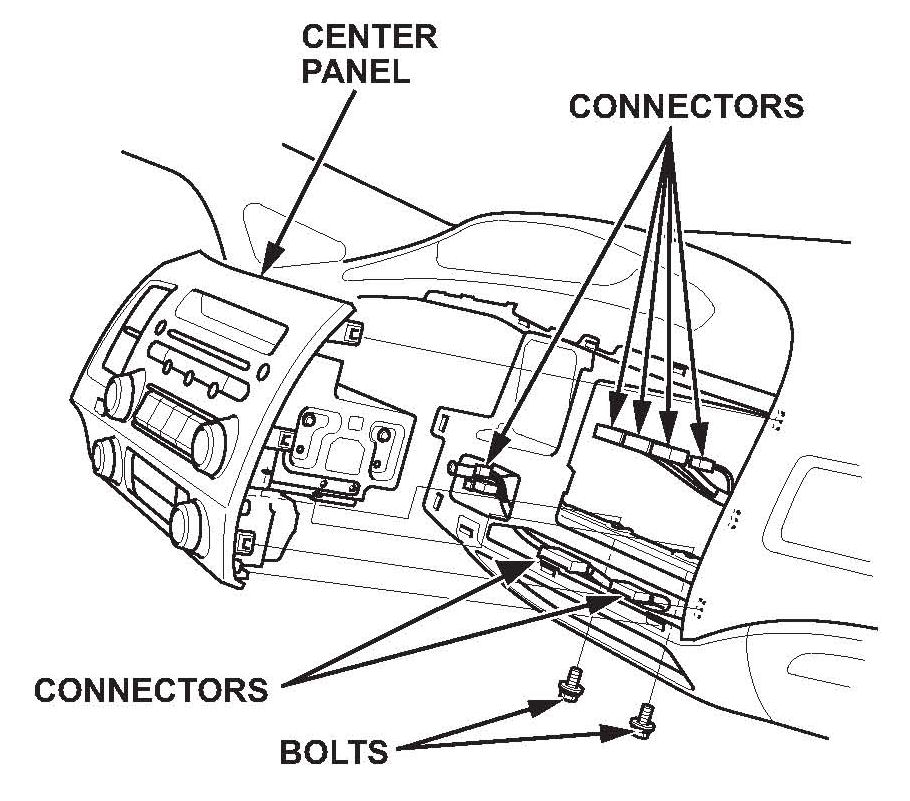 15. Install the new center panel in the reverse order of removal, and make sure all of the connectors are securely connected.