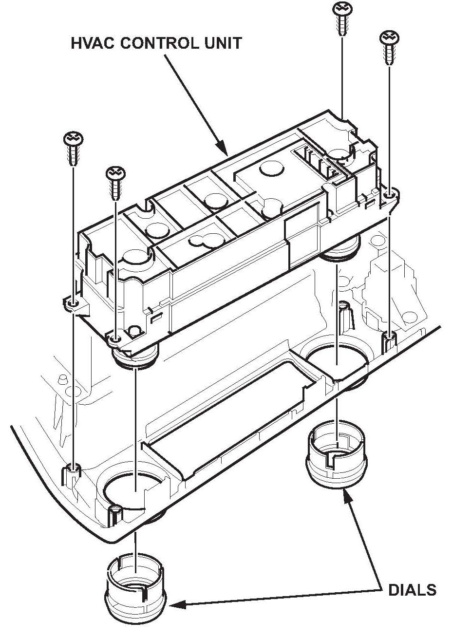 10. Remove the HVAC control unit from the center panel by removing the dials and the four self-tapping screws.