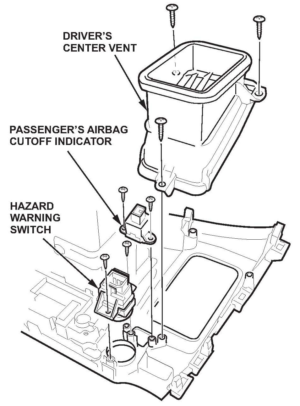 12. Remove the passenger's airbag cutoff indicator from the center panel (two screws).