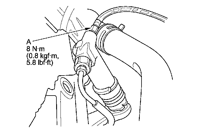 2. Attach one end of a clear tube to the bleeder screw (A), and put the other end into a container. Loosen the bleeder screw to allow air to escape from the system.