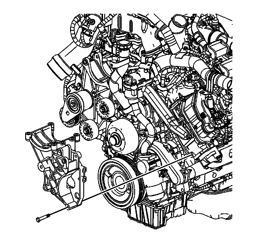 19. Remove the heater outlet hose bolt from the generator bracket.